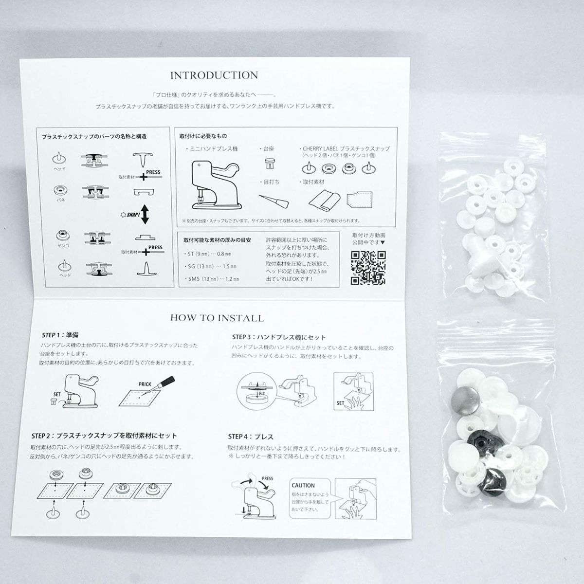 他の画像を見る CL-PRESS プラスチックスナップ専用打ち機 スターターセット (台座、スナップセット) ボタン ぼたん 釦 ハンドプレス機 CHERRY LABEL チェリーレーベル ¥ 4,950 税込 お気に入りに登録する