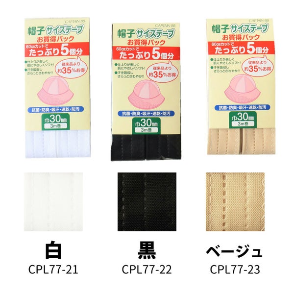 帽子サイズテープお買い得パック 巾30mm×3m巻 | 手芸材料のネットショップ つくる楽しみ.com