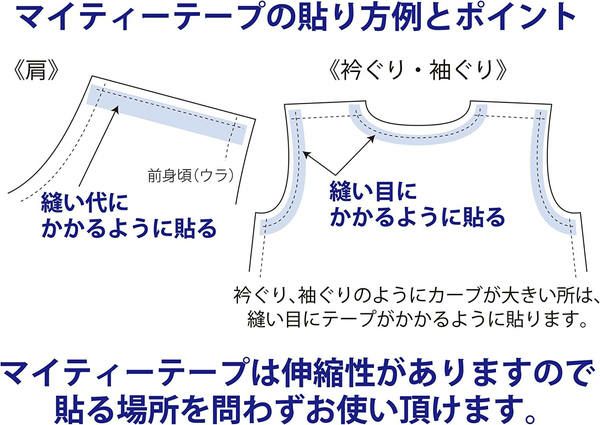 生地に負荷がかかりやすい部分の強度を保つために、若干のびが必要な袖口等、大きなカーブ部分の伸びすぎ防止に。