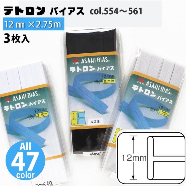 テトロン バイアス 巾12mm 2.75m巻 同色3枚入 | つくる楽しみ
