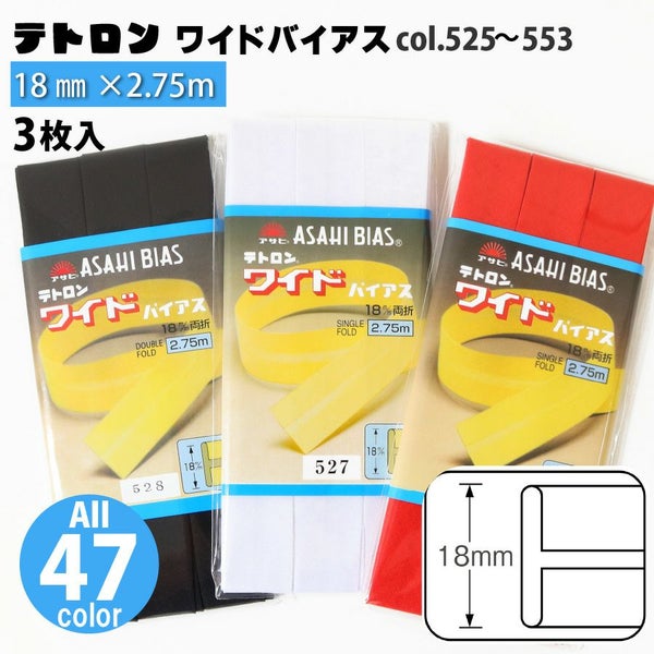 テトロン ワイド バイアス 巾18mm 2.75m巻 同色3枚入 | つくる楽しみ