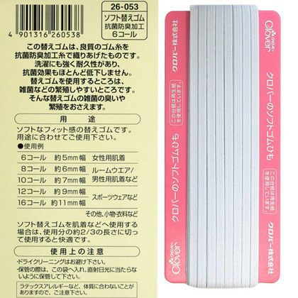 ソーイング ソフト替えゴム 抗菌防臭加工 5mm幅~ 白 Clover| つくる楽しみ