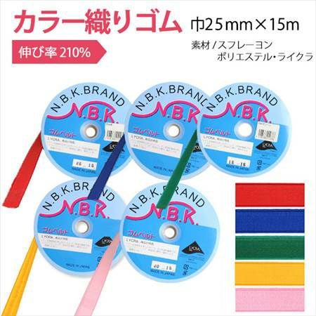 カラーオリゴム 巾25mm×15m巻 | つくる楽しみ ゴム | 手芸材料のネットショップ つくる楽しみ.com