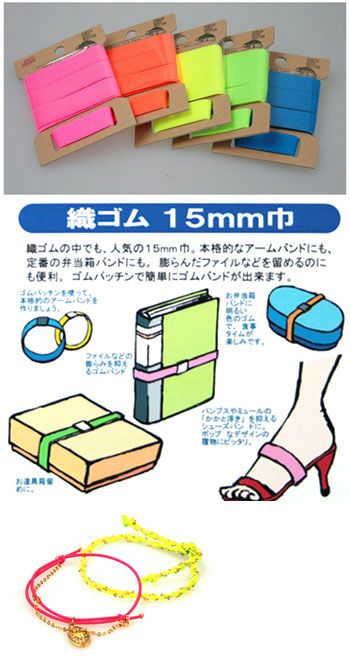 ネオンカラーゴム 織ゴム(オリゴム) 15mm巾×0.8m巻 | 手芸材料のネットショップ つくる楽しみ.com