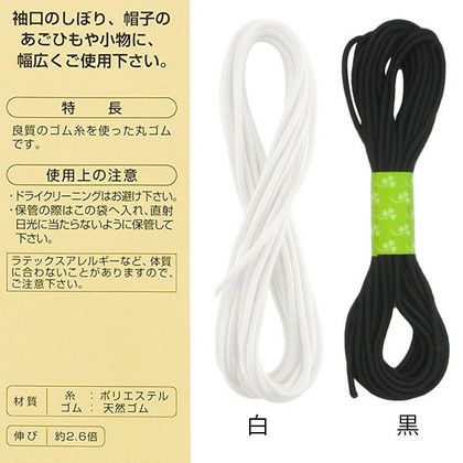 丈夫で伸縮性にすぐれた高品質のゴム紐。