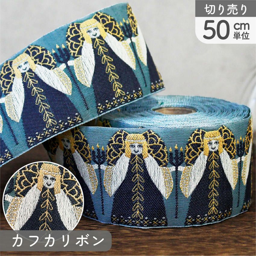 他の画像を見る PAU100268-7-50 リボン 高級ジャガード織 ジャガードリボン 織リボン カフカリボン ドイツリボン インポート 巾約5cm (50cm単位の切り売り) ¥ 1,558 税込 お気に入りに登録する