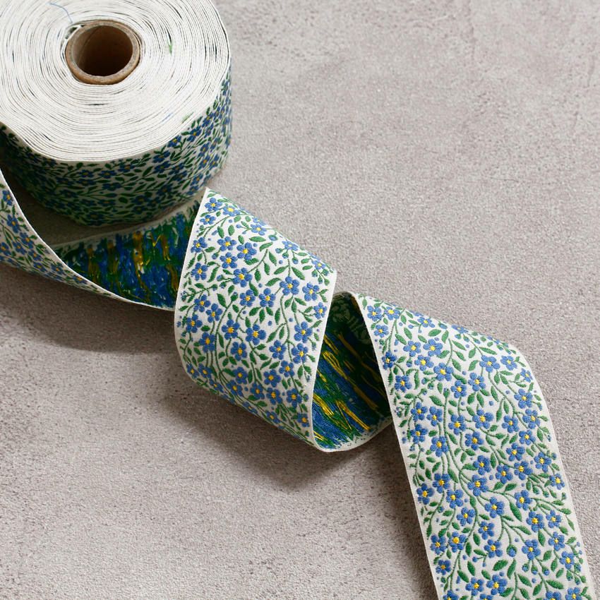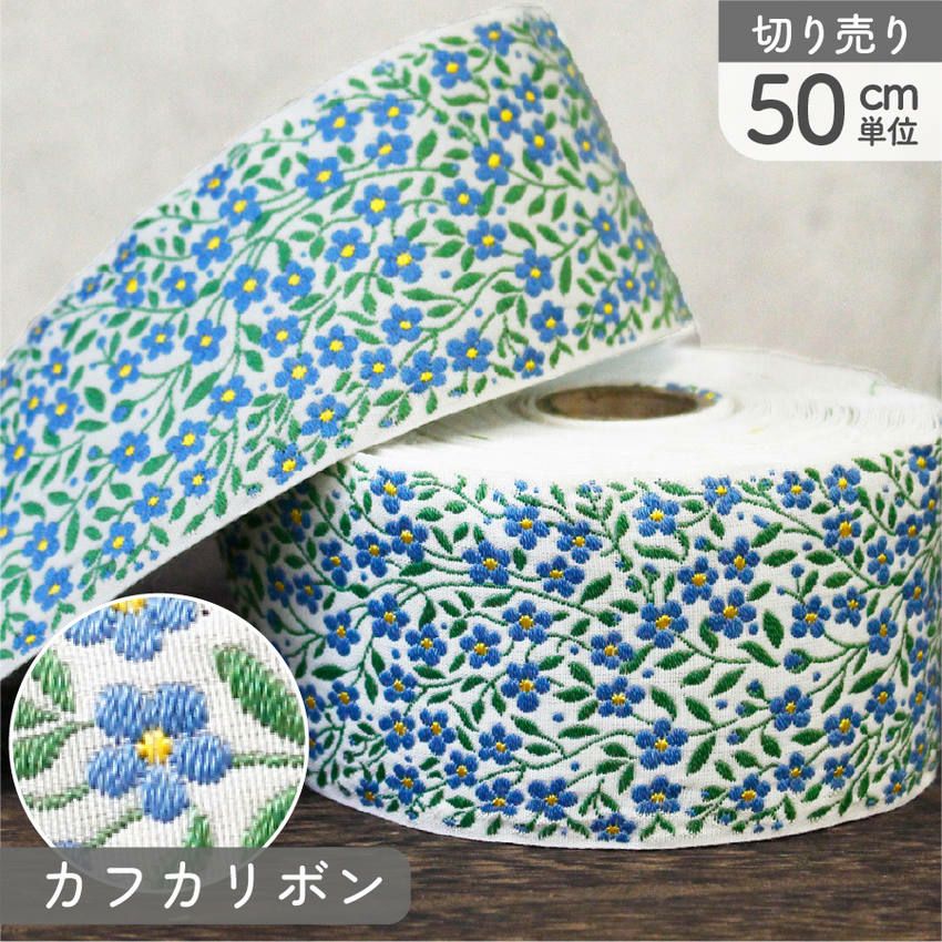 他の画像を見る PAU100268-29-50 リボン 高級ジャガード織 ジャガードリボン 織リボン カフカリボン ドイツリボン インポート 巾約5cm (50cm単位の切り売り) ¥ 1,558 税込 お気に入りに登録する