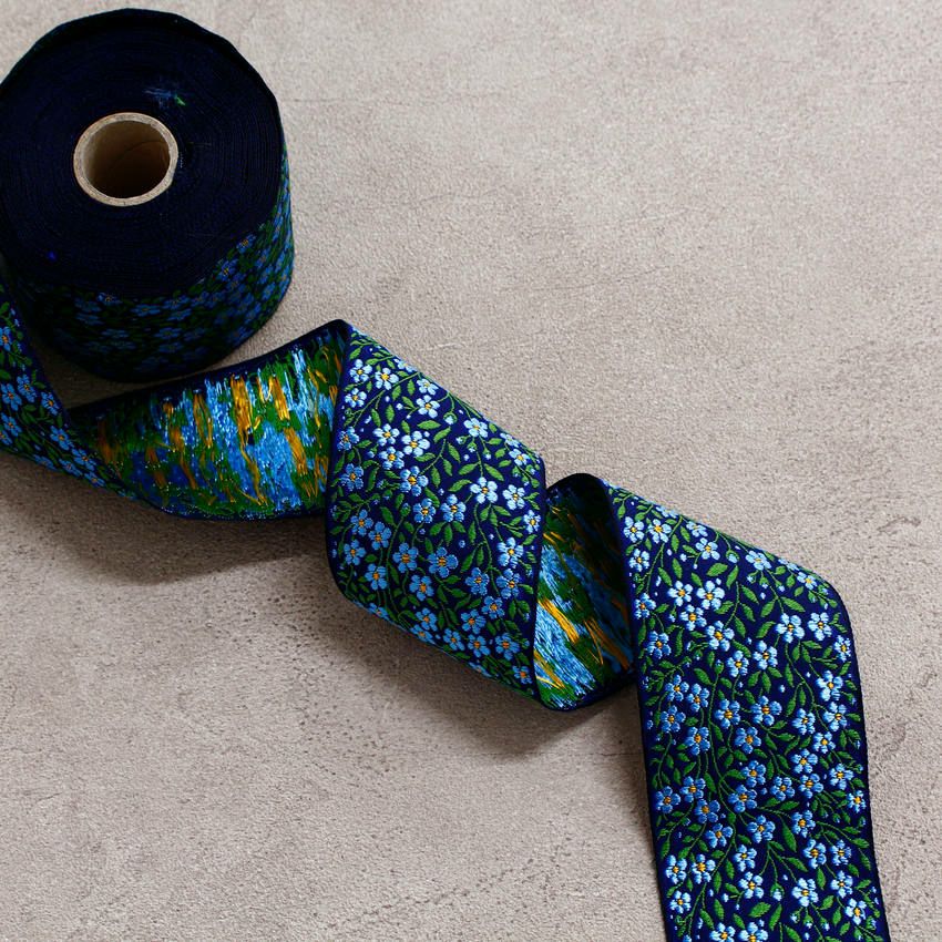 他の画像を見る PAU100307-1 リボン 高級ジャガード織 ジャガードリボン 織リボン カフカリボン ドイツリボン インポート 巾約4.1cm (50cm単位の切り売り) ¥ 1,001 税込 お気に入りに登録する