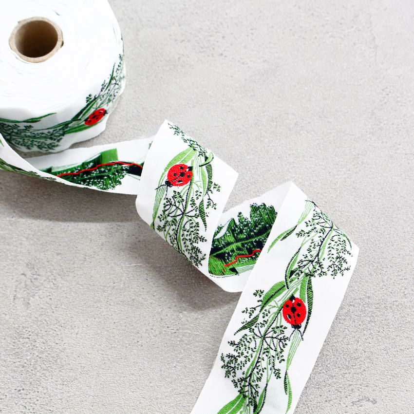 他の画像を見る PAU100584-1 リボン 高級ジャガード織 ジャガードリボン 織リボン カフカリボン ドイツリボン インポート 巾約5.2cm (50cm単位の切り売り) ¥ 1,309 税込 お気に入りに登録する