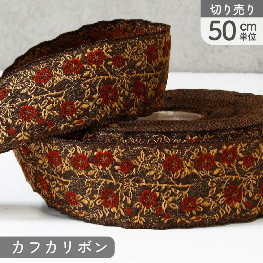 他の画像を見る PAU100268-4 リボン 高級ジャガード織 ジャガードリボン 織リボン カフカリボン ドイツリボン インポート 巾約5cm (50cm単位の切り売り) ¥ 1,309 税込 お気に入りに登録する