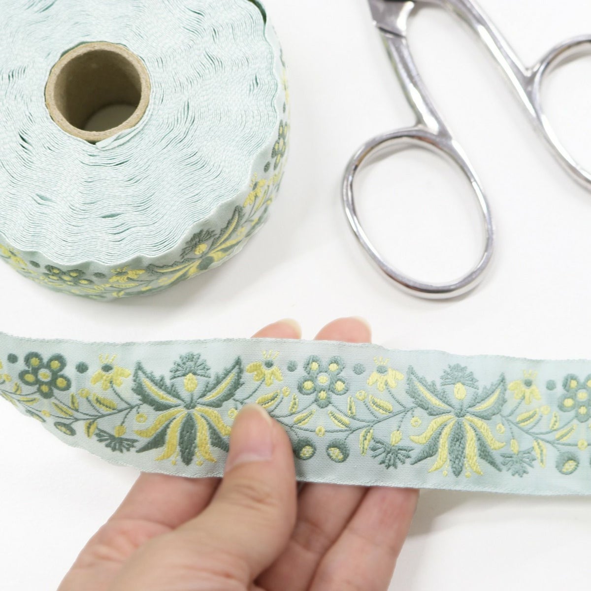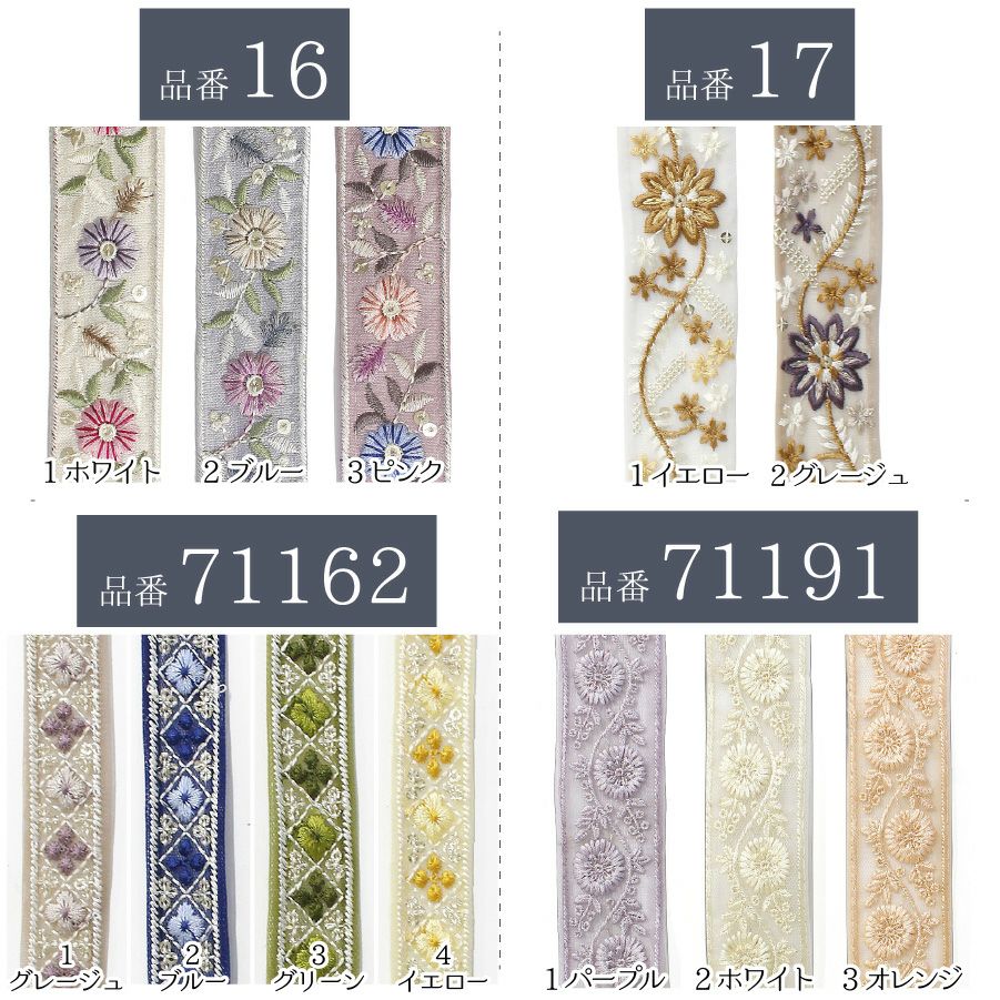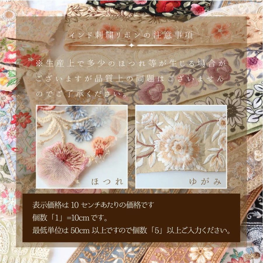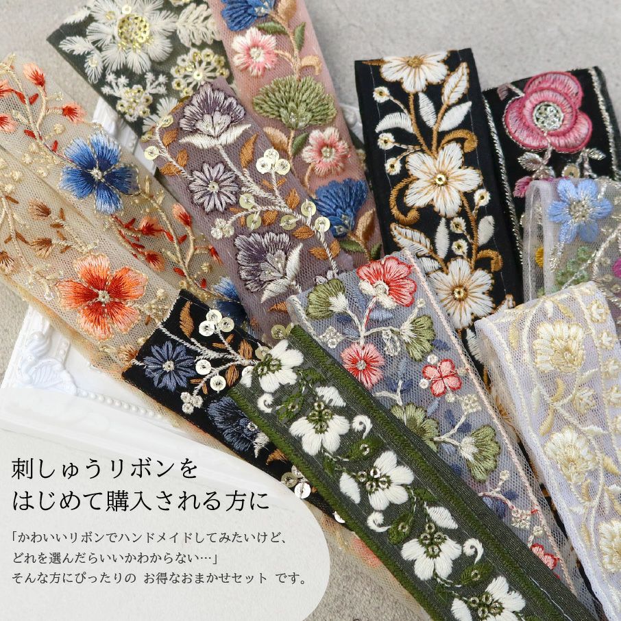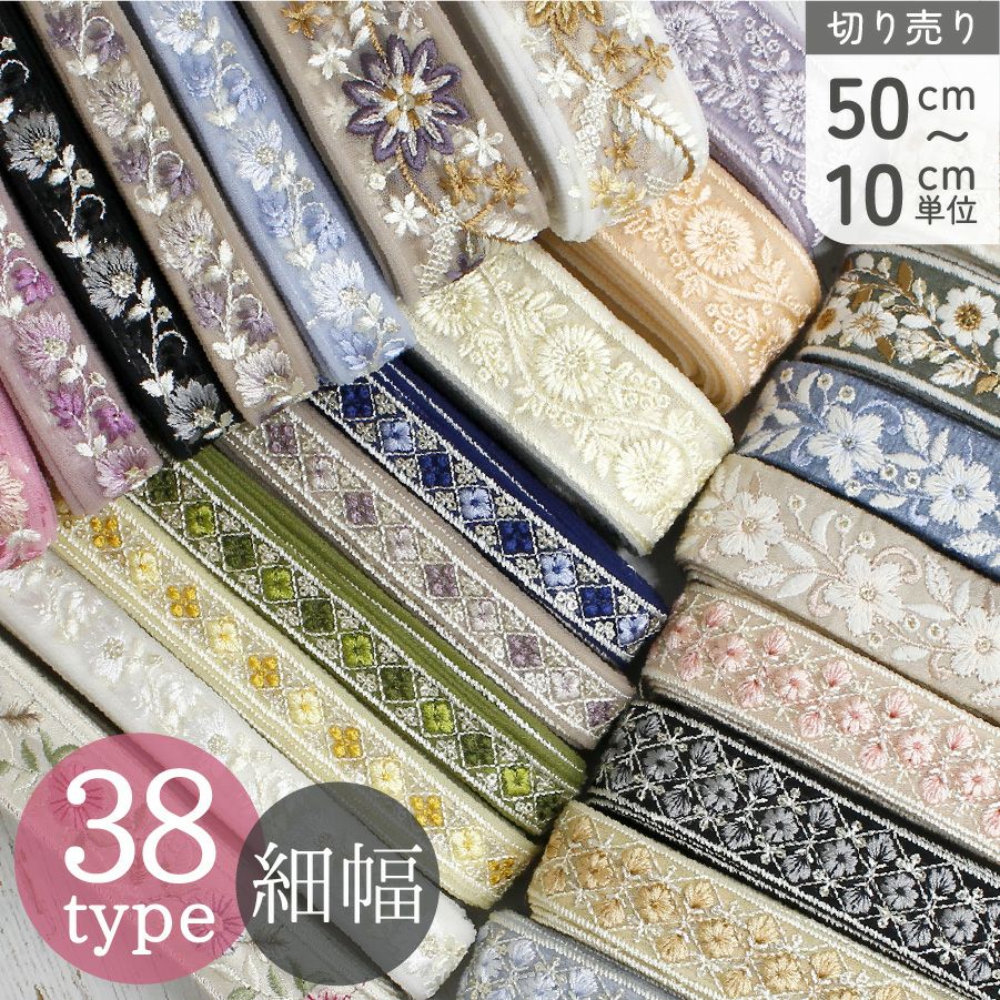 他の画像を見る KF-L 【50cm~10cm単位】 インド刺しゅうリボン 細幅 カット売り インド製 刺しゅう リボン おしゃれ 花柄 ハンドメイド ショルダー ストラップ 手芸 スマホ アクセサリー りぼん│ つくる楽しみ ¥ 99 税込 お気に入りに登録する