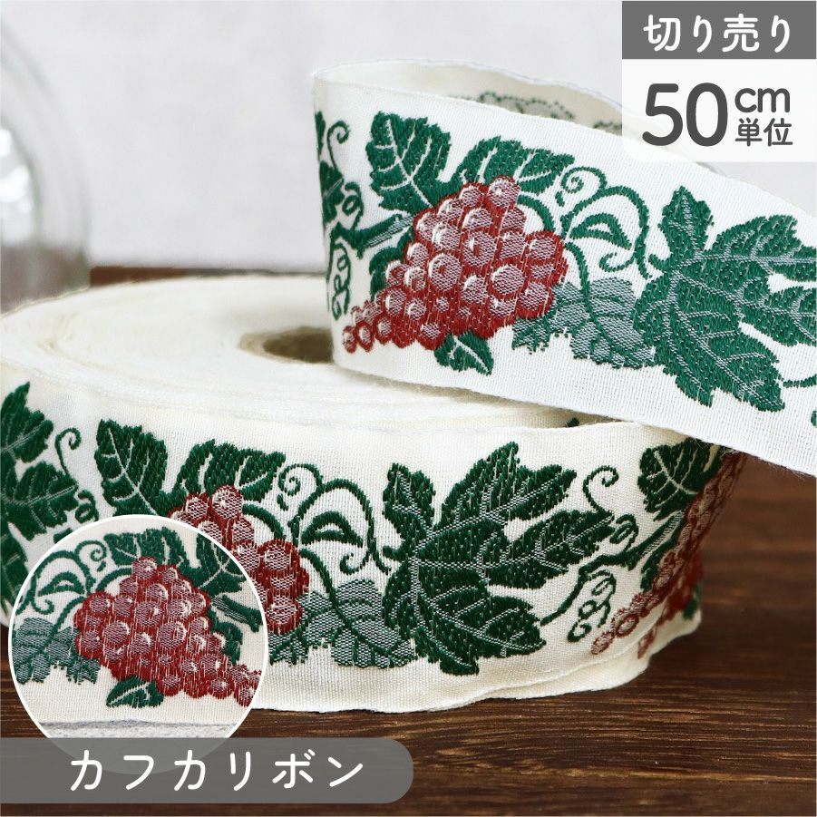 他の画像を見る PAU100268-26 リボン 高級ジャガード織 ジャガードリボン 織リボン カフカリボン ドイツリボン インポート 巾約5cm (50cm単位の切り売り) ¥ 1,309 税込 お気に入りに登録する
