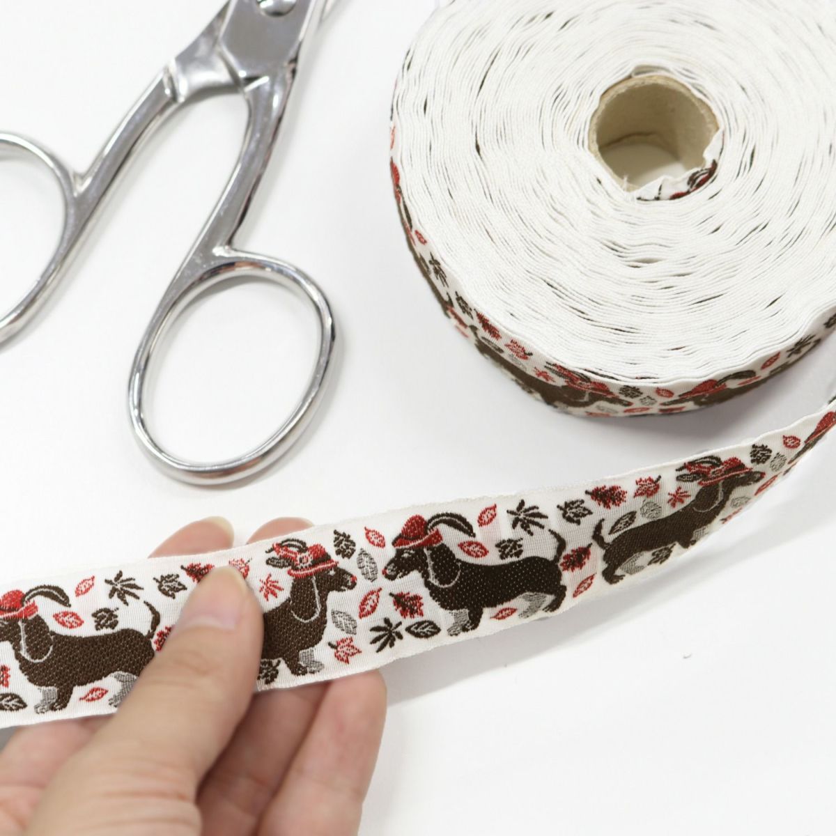 他の画像を見る PAU100612-4-50 リボン 高級ジャガード織 ジャガードリボン 織リボン カフカリボン ドイツリボン インポート 巾約3.2cm (50cm単位の切り売り) ¥ 1,283 税込 お気に入りに登録する