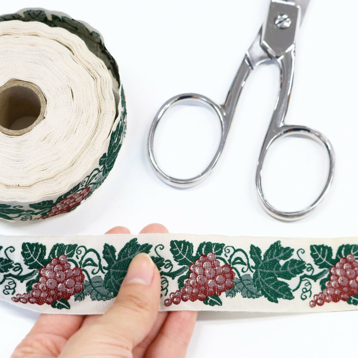 他の画像を見る PAU100587-2 リボン 高級ジャガード織 ジャガードリボン 織リボン カフカリボン ドイツリボン インポート 巾約3.2cm (50cm単位の切り売り) ¥ 1,001 税込 お気に入りに登録する