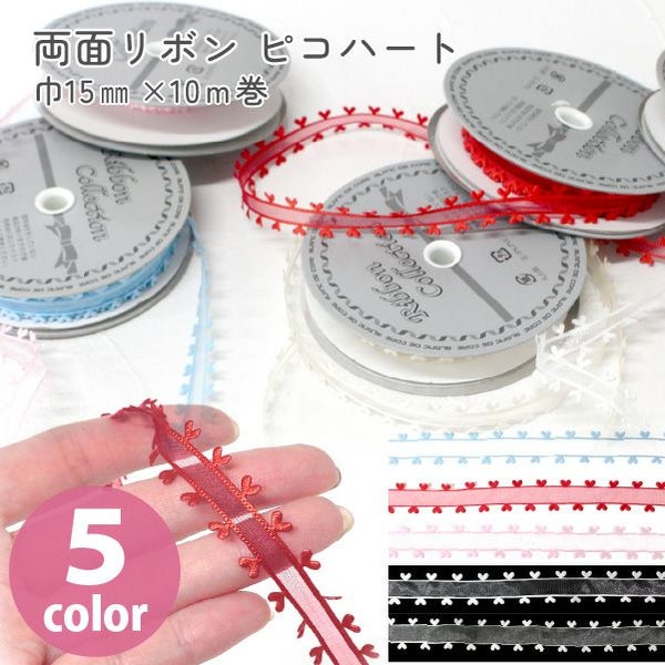 ハート リボン ピコハート 両縁ハートリボン 巾15mmx10m ハート バレンタイン ラッピング | 手芸材料のネットショップ つくる楽しみ.com