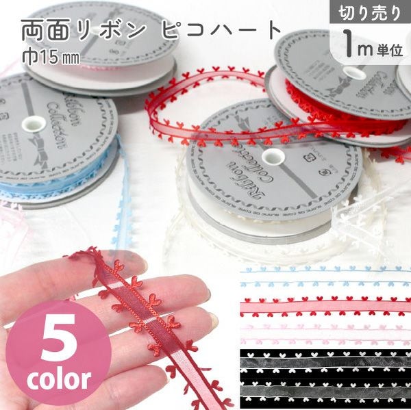 ハート リボン ピコハート 両縁ハートリボン 巾15mmx1m単位の切売り ハート バレンタイン ラッピング | 手芸材料のネットショップ つくる楽しみ.com