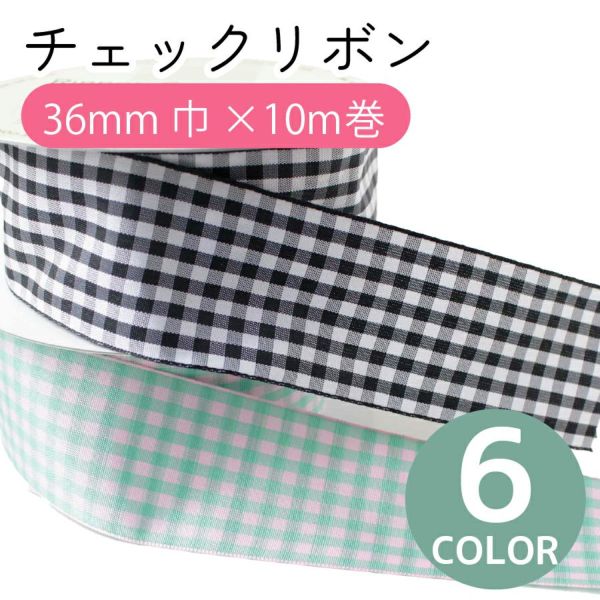 リボン ギンガムチェックリボン 36mmx10m巻 大巻 りぼん モルドールデコパーツ | 手芸材料のネットショップ つくる楽しみ.com