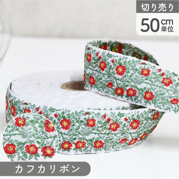 リボン 高級ジャガード織 ジャガードリボン 織リボン カフカリボン ドイツリボン インポート 巾約2.5cm (50cm単位の切り売り) | 手芸材料のネットショップ つくる楽しみ.com