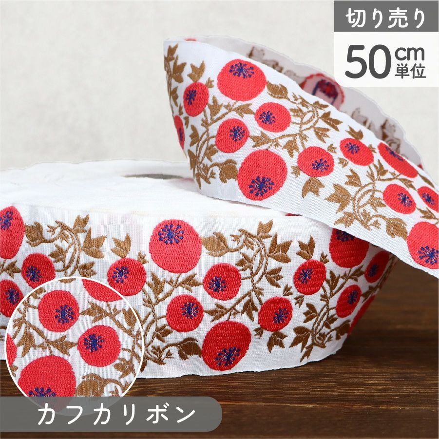リボン 高級ジャガード織 ジャガードリボン 織リボン カフカリボン ドイツリボン インポート 巾約5cm (50cm単位の切り売り) | 手芸材料のネットショップ つくる楽しみ.com