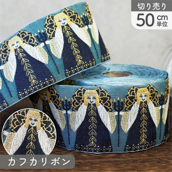 リボン 高級ジャガード織 ジャガードリボン 織リボン カフカリボン ドイツリボン インポート 巾約5.2cm (50cm単位の切り売り) | 手芸材料のネットショップ つくる楽しみ.com