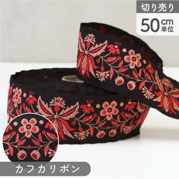 リボン 高級ジャガード織 ジャガードリボン 織リボン カフカリボン ドイツリボン インポート 巾約3.2cm (50cm単位の切り売り) | 手芸材料のネットショップ つくる楽しみ.com