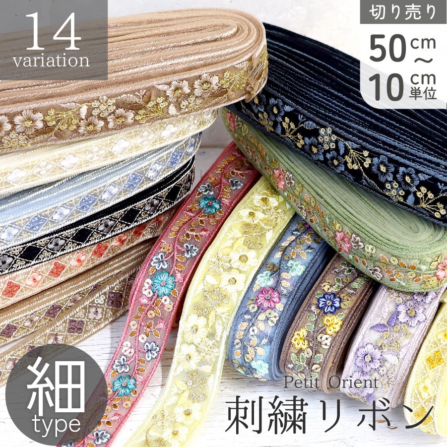 他の画像を見る KF-L 【50cm~10cm単位】 インド刺しゅうリボン 細幅 カット売り インド製 刺しゅう リボン おしゃれ 花柄 ハンドメイド ショルダー ストラップ 手芸 スマホ アクセサリー りぼん│ つくる楽しみ ¥ 99 税込 お気に入りに登録する