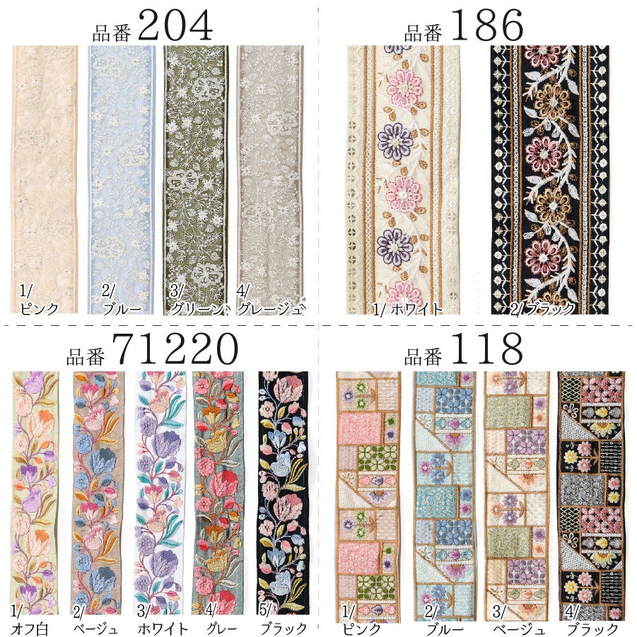 他の画像を見る KF-P レシピ付 インド刺しゅうリボン 太幅 5~8.5cm カット売 刺繍リボン 手芸用 ソーイング ハンドメイド バッグ作り インテリア装飾 存在感 高級感50cm~10単位の切売 ¥ 220 税込 お気に入りに登録する