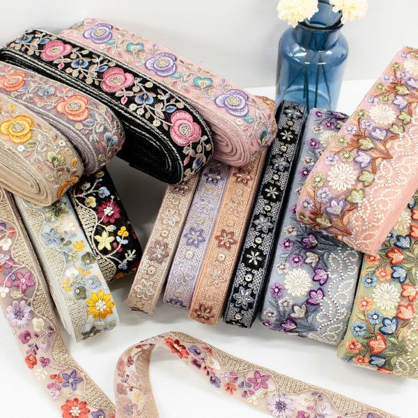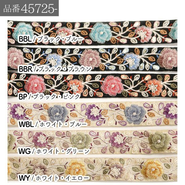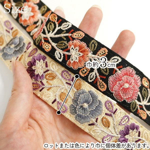 【50cm~10cm単位】 インド刺しゅうリボン 細幅 カット売り インド製 刺しゅう リボン おしゃれ 花柄 ハンドメイド ショルダー ストラップ 手芸 スマホ アクセサリー りぼん│ つくる楽しみ