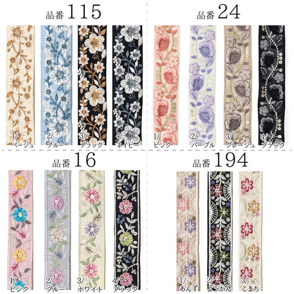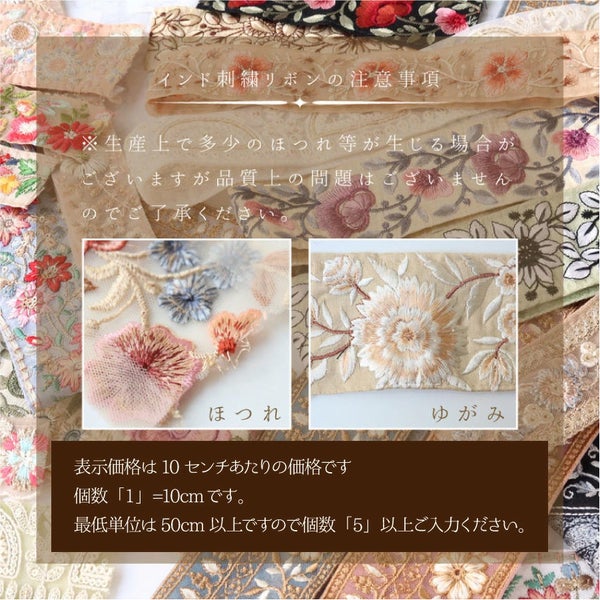 繊細な刺しゅうが施された上品なリボンは、ハンドメイド作品をワンランク上の仕上がりに。