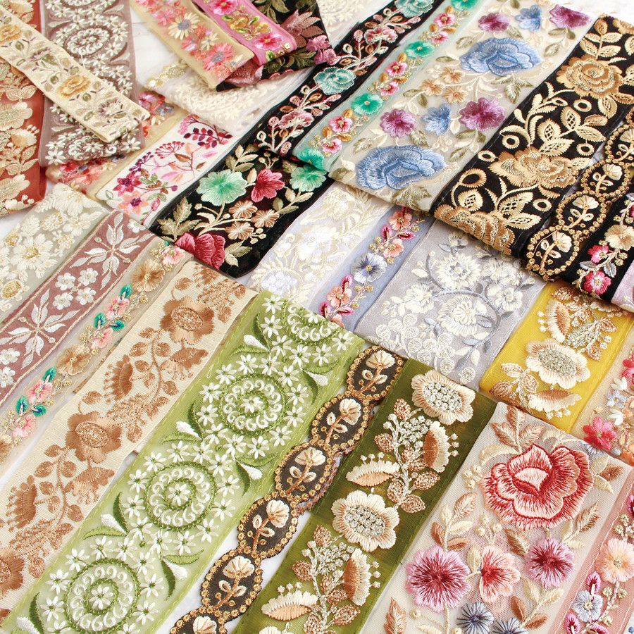 レシピ付 インド刺繍リボン 約30cm×3本 アソートセット インド製 刺しゅう リボン インド 刺しゅう リボン おしゃれ 花柄 ハンドメイド ショルダー ストラップ 手芸 スマホ アクセサリー りぼん│ つくる楽しみ | 手芸材料のネットショップ つくる楽しみ.com