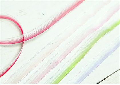 サイドがキラキラ光る淡いカラーがグラデーションになったリボンです。
