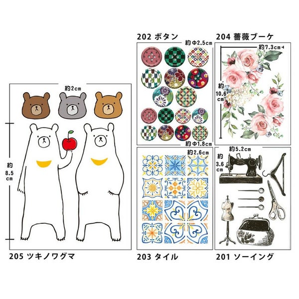 chukoオリジナル転写シール 1枚入 全5種類 クマ柄 花柄 タイル柄 ボタン柄 | 手芸材料のネットショップ つくる楽しみ.com