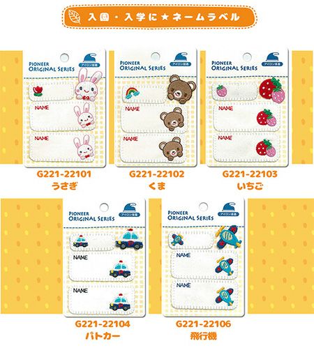 ネームラベル ネームワッペン 動物 果物 乗り物 アイロン接着タイプ G221-22101・22102・22103・22104・22106| つくる楽しみ 入園入学