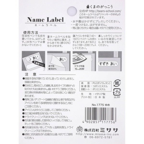 ミササ くまのがっこう ネームラベル ゆめ アイロン接着 1775 | 手芸材料のネットショップ つくる楽しみ.com