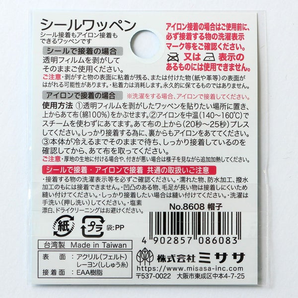 シール接着もアイロン接着もできるワッペンです。
