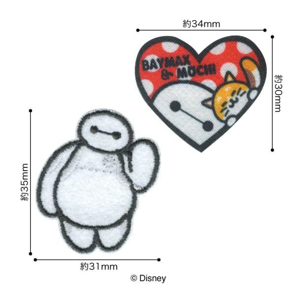 パイオニア ディズニー ベイマックス ベイマックス/モチ 2個付きワッペン アイロン&シール両用タイプ 入園入学 小学生 保育園 キャラクター