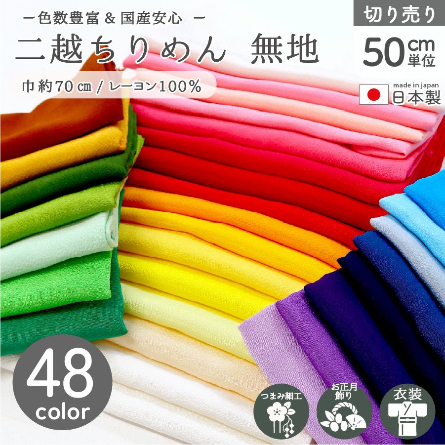他の画像を見る PCM-ALL 二越ちりめん 無地 ちりめん 生地 布 約50色 巾約70cmx50cm単位の切売 ちりめん ふたこし つまみ細工 紅 和手芸 和小物 はぎれ レーヨン 上品 ちりめん細工 手芸用 ¥ 550 税込 お気に入りに登録する