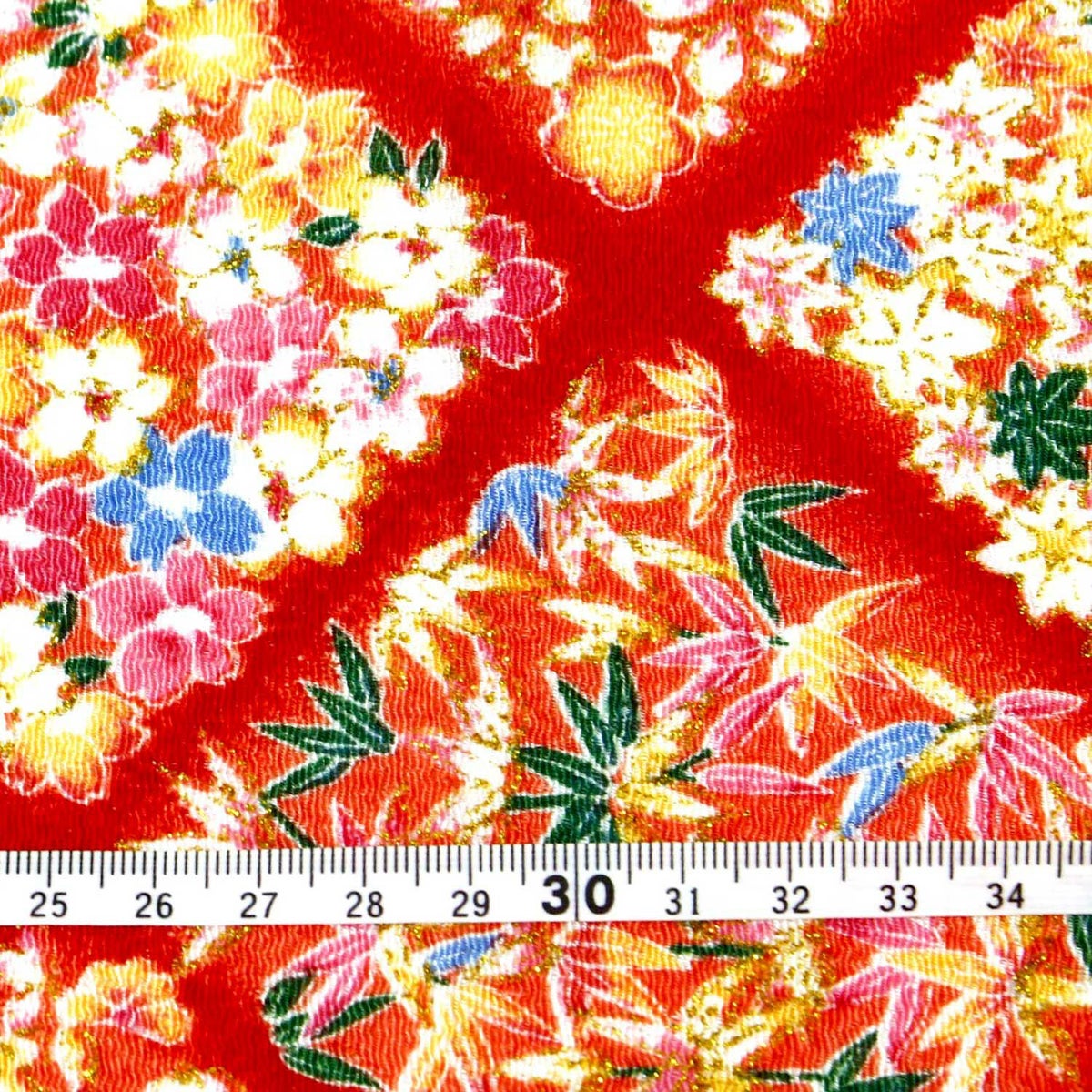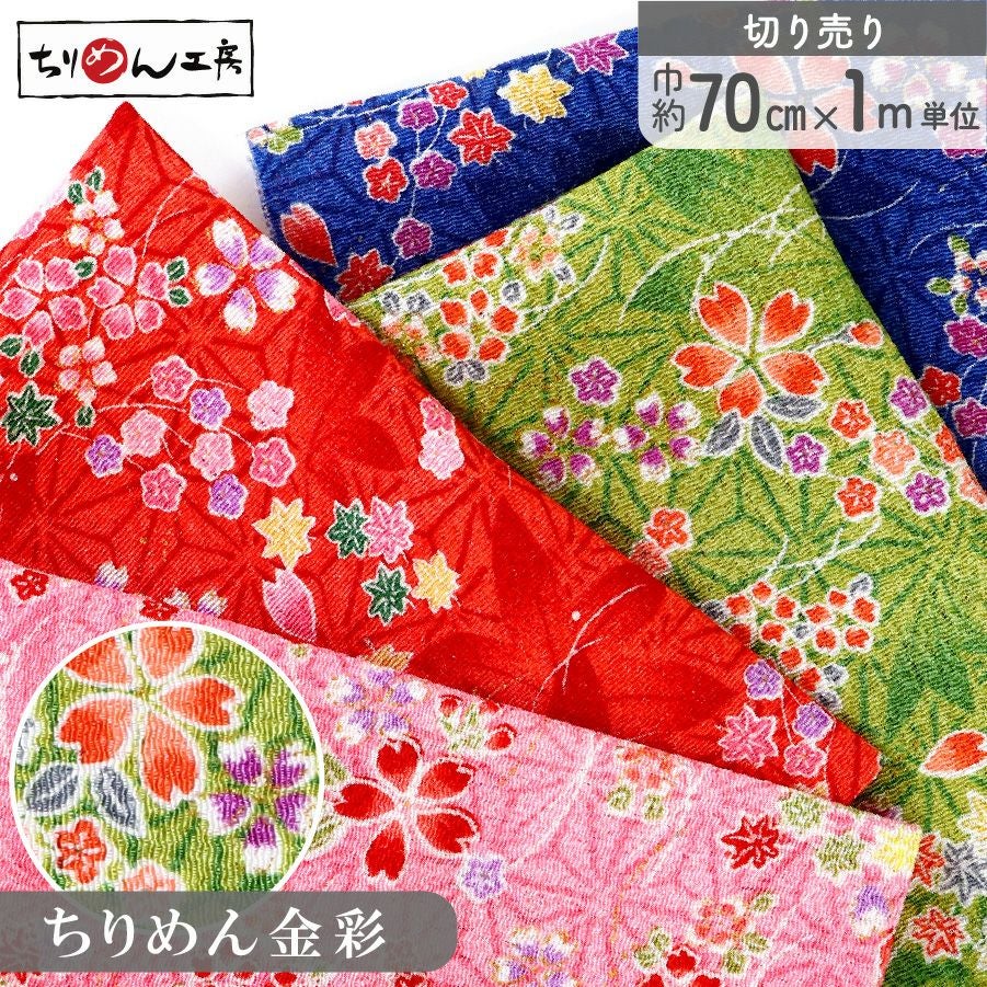 他の画像を見る GH42-CUT ちりめん 生地 金彩 約70cm×1m単位 切り売り レーヨン100% 桜と紅葉 金彩メーター売り つまみ細工 古典柄 和柄 小物 手芸 ¥ 2,728 税込 お気に入りに登録する