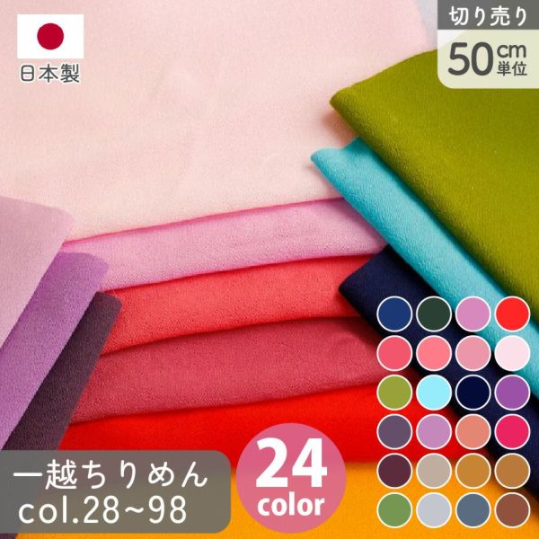 一越ちりめん 無地 ちりめん 生地 布 47色 co.28~98 巾約70cmx50cm単位の切売 ちりめん ひとこし つまみ細工 和手芸 日本製│つくる楽しみ PIC スプリングカラー