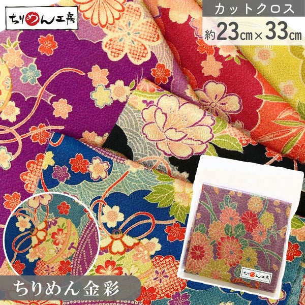 ちりめん 和柄 生地 カットクロス 23×33 レーヨン 縮緬細工 つまみ細工 和小物 パッチワーク クラフト 手芸 資材 青海波 麻の葉 唐草 矢絣 小紋 金彩 日本製 ハンドメイド 材料