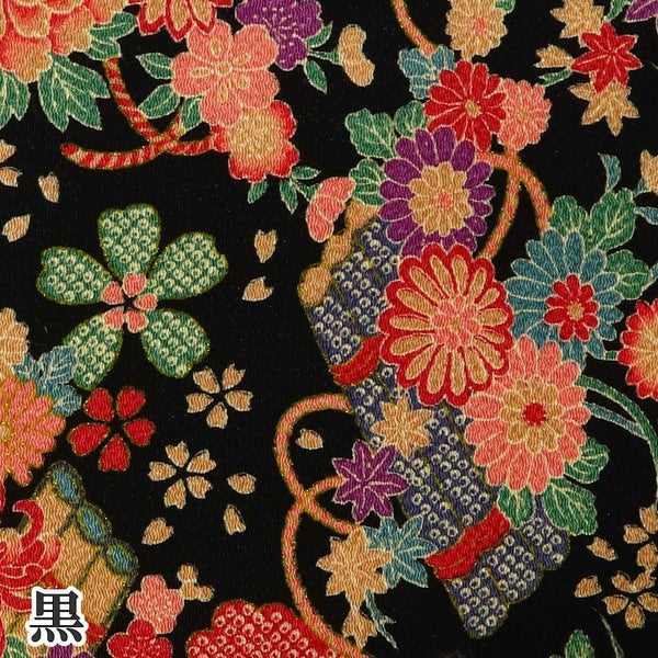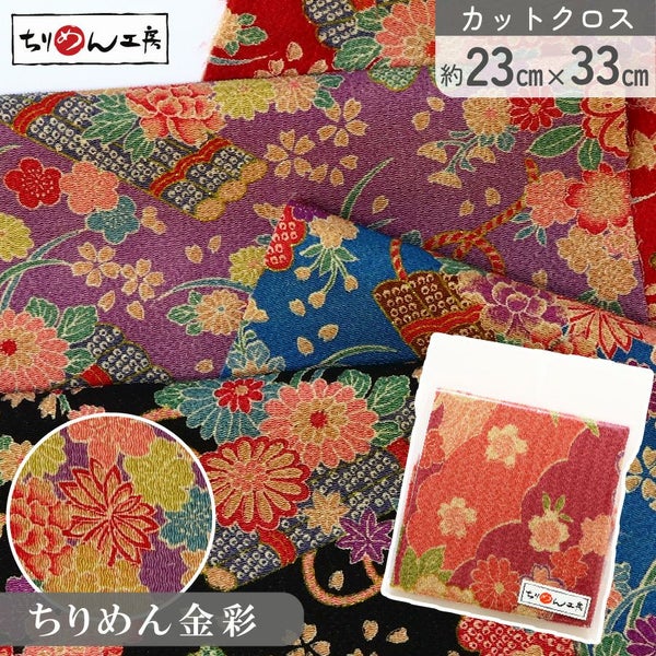 DS8-CUTC ちりめん カットクロス 生地 金彩 レーヨン100% 約23×33cm 菊と椿はぎれ つまみ細工 古典柄 和柄 小物 手芸