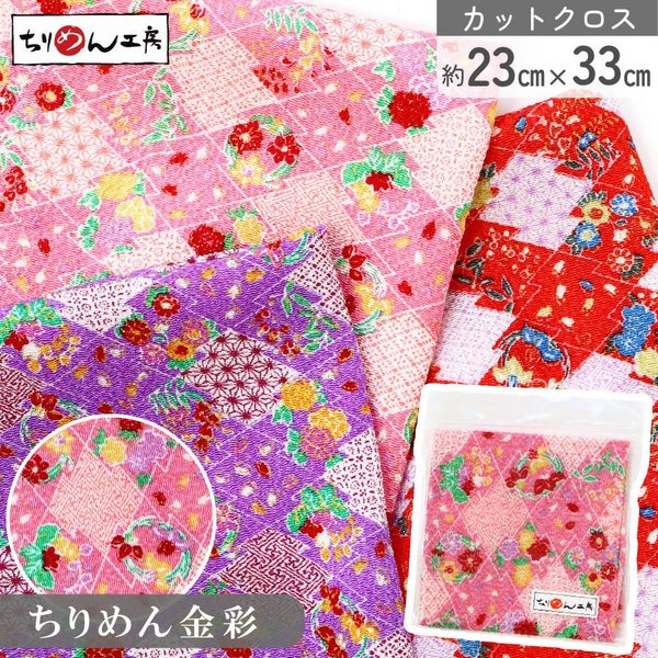 ちりめん 和柄 生地 カットクロス 23×33 レーヨン 縮緬細工 つまみ細工 和小物 パッチワーク クラフト 手芸 資材 青海波 麻の葉 唐草 矢絣 小紋 金彩 日本製 ハンドメイド 材料