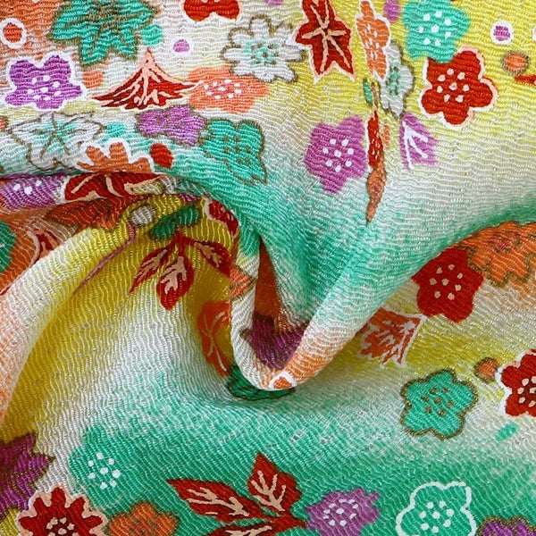 5. ちりめん カットクロス 生地 金彩 レーヨン100% 約23×33cm 紅葉と小花 グラデーション 金彩 はぎれ つまみ細工 古典柄 和柄 小物 手芸