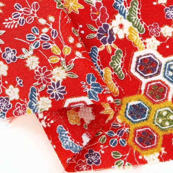 ちりめん 和柄 生地 カットクロス 23×33 レーヨン 縮緬細工 つまみ細工 和小物 パッチワーク クラフト 手芸 資材 青海波 麻の葉 唐草 矢絣 小紋 金彩 日本製 ハンドメイド 材料