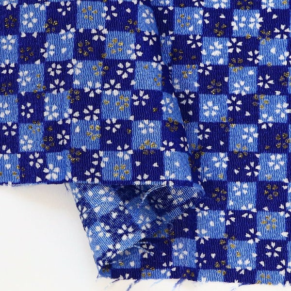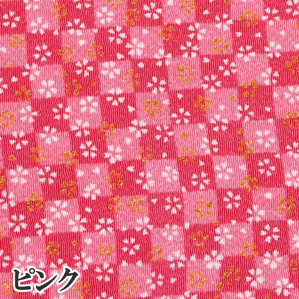 GN97-CUTC ちりめん カットクロス 生地 金彩 レーヨン100% 約23×33cm 小桜と市松 金彩 はぎれ つまみ細工 古典柄 和柄 小物 手芸