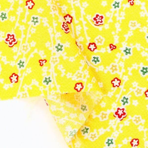 5. ちりめん カットクロス 生地 金彩 レーヨン100% 約23×33cm 小梅枝はぎれ つまみ細工 古典柄 和柄 小物 手芸