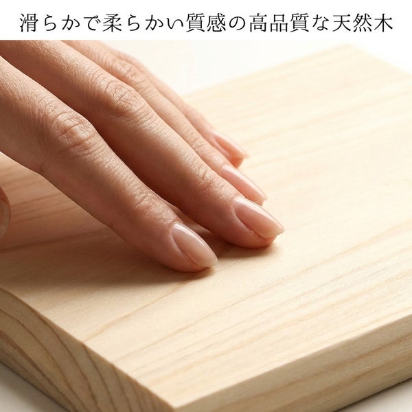 奈良県の国産檜(ひのき)を使用した、美しい白さと滑らかで柔らかい質感の高品質な天然木です。
