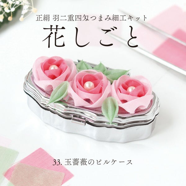 羽二重四匁生地つまみ細工キット「花しごと」33 玉薔薇のピルケース キット つまみ細工キット | 手芸材料のネットショップ つくる楽しみ.com