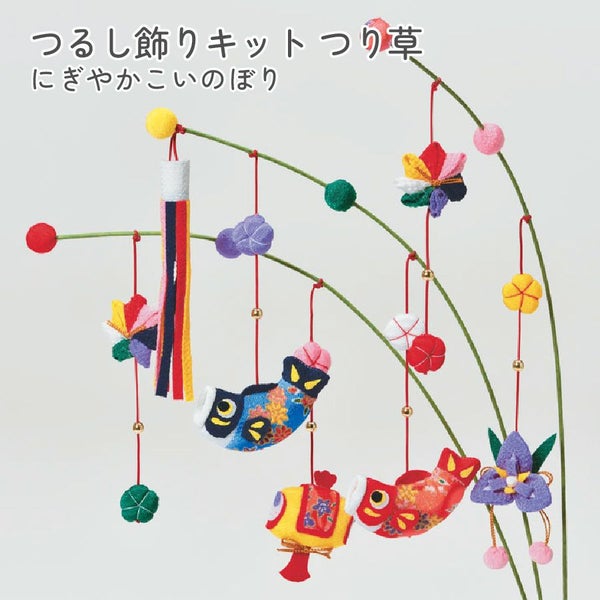 京ちりめんで作れる、こいのぼりや縁起物を吊るしたつり草飾りのキット。