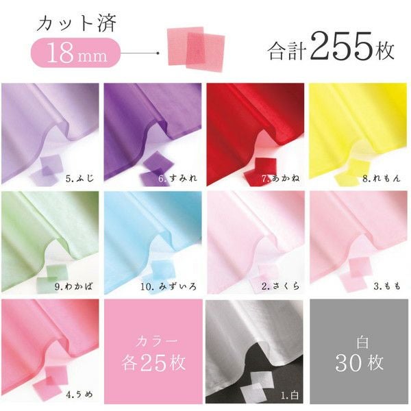 - 徳用 正絹 羽二重四匁 つまみ細工用 カット済生地 18mm 全10色 計255枚入 つまみ細工 正絹 本絹 シルク シルクオーガンジー シルクジョーゼット シルクシフォン